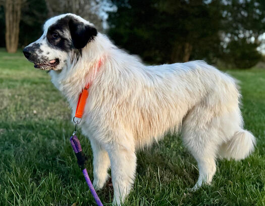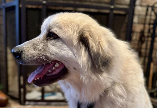 Tucker is a total character: he adores stuffed animals and balls, plays an epic game of tug-of-war, and how to play hide-and-seek—yes! He’s always up for adventure, especially road trips to snag a pup cup. At just a year old, he’s got that youthful energy typical of a young Pyr, but with the smart, eager-to-please brain that makes him a quick learner. He already knows sit, shake, and more, and picks up new commands easily—perfect for an adopter who wants to keep training fun and build even more tricks together.