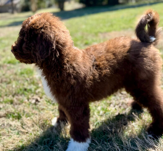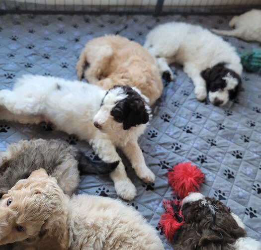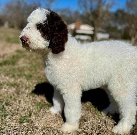 These sweet F1b Pyredoodle puppies (75% Standard Poodle, 25% Great Pyrenees) are a gorgeous litter of 6 fluffy, curly-coated babies, ready to find their forever homes!Born to a devoted Pyredoodle mom (from a Pyrenees x Poodle pairing) and sired by a striking Standard Poodle with beautiful brown accents, these pups feature stunning colors: creams, apricots, browns, and eye-catching parti patterns. Their coats lean curly and low-shedding—thanks to the strong Poodle influence—making them a great option for families seeking more allergy-friendly traits while keeping that gentle, protective Pyrenees heart.Mom is a calm, affectionate girl who’s been an amazing mom, and she’s available for adoption too (perhaps with a pup or on her own for the perfect match).Tragically, their owner faced serious medical emergencies visits and could no longer care for the family. She reached out in distress, hoping to keep these young ones out of shelters. Though Pyredoodles are a bit outside our usual Great Pyrenees focus at Great Pyrenees Rescue Southeast, we stepped in because we couldn’t bear the thought of these gentle souls in tough situations. We’re committed to helping them find loving homes that appreciate their smarts, loyalty, and fluffy charm.At ~12 weeks old, these playful explorers are showing big personalities—some bold and zoomie-filled, others snuggly and chill—with doodle intelligence and Pyrenees gentleness already shining.They’ll grow into large (60-90+ lb), majestic companions ideal for active families, homesteads, or homes with space, kids, and maybe livestock once socialized. Expect trainability, family bonding, and that watchful guardian vibe.Fully vetted (vaccines, deworming, health checks, microchipped), ready to go!If you’re ready for a loyal, fluffy “gentle giant” with Pyr Strong™ spirit and doodle sparkle, apply today!These special pups won’t wait long—help give them the happy ending their owner dreamed of. 🐾💕